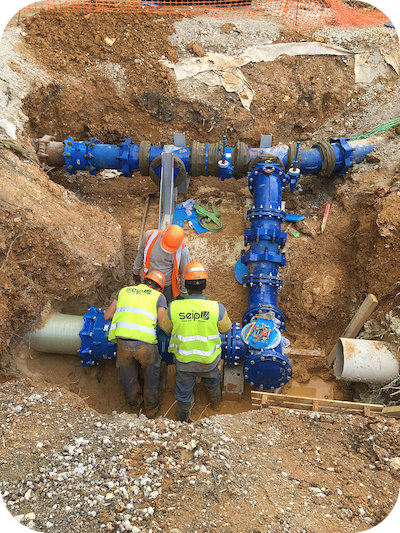 Multispécialistes, nous intervenons en travaux neufs sur des chantiers de lotissements ou d’équipements privés, ainsi que quotidiennement auprès des syndicats et concessionnaires pour l’entretien et le renouvellement des réseaux d'eau potable.